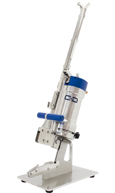 Клипсатор настольный, с пневматическим приводом клипсования, предназначен для закрытия алюминиевыми U-образными скрепками (клипсами) различных видов рукавных искусственных, коллагеновых и натуральных колбасных оболочек, пакетов, рукавных сеток и мешков.