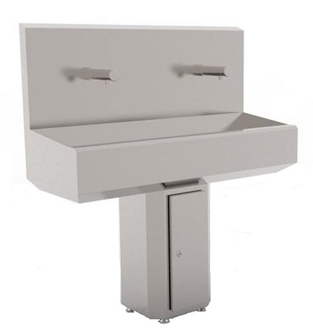 Также имеется модель бесконтактного умывальника с двумя сенсорными смесителями. Габариты такого умывальника: 1250×480×1400 мм.